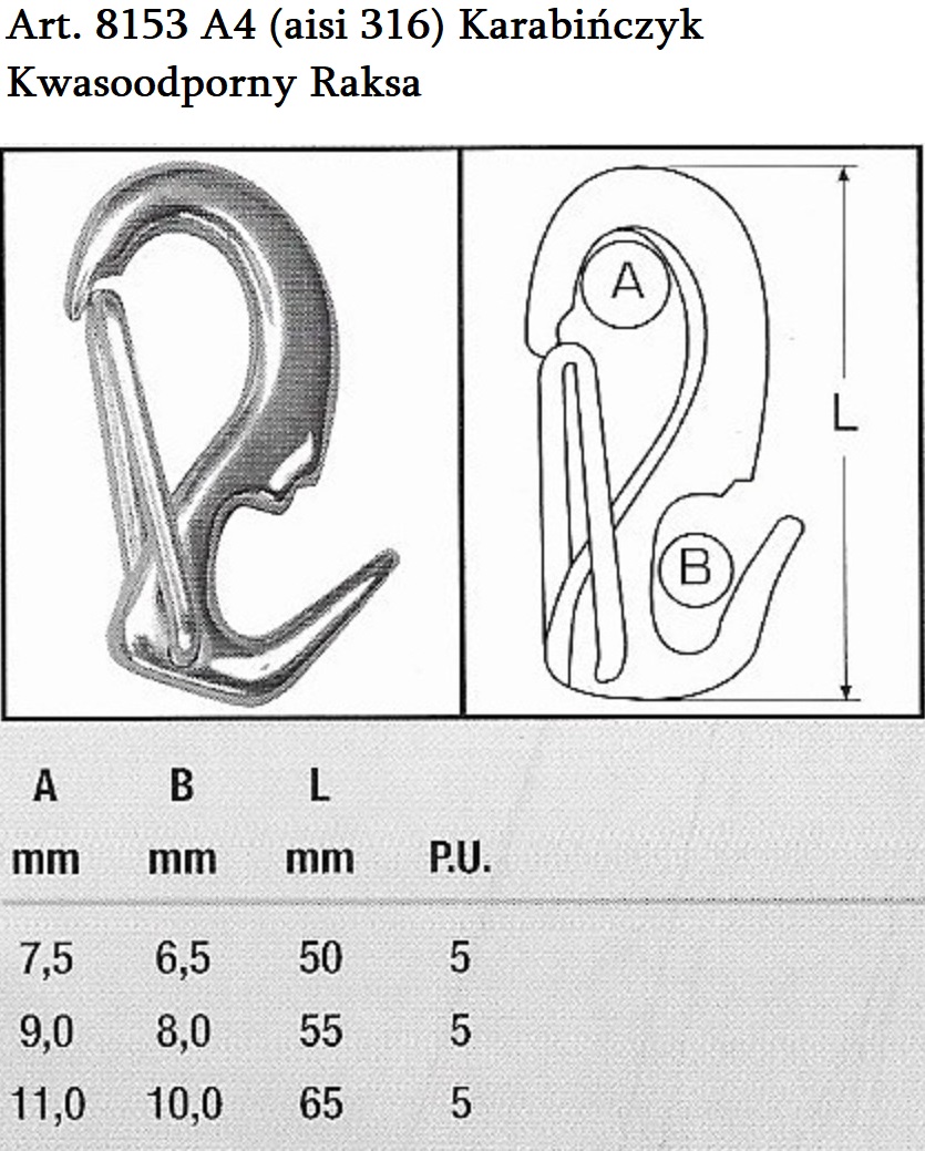 Art. 8153 A4 (aisi 316) Karabińczyk Raksa Kwasoodporny