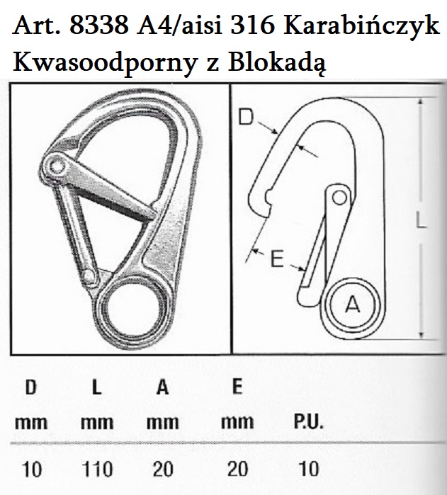 Art. 8338 A4 10x110 Karabińczyk z Podwójną Blokadą